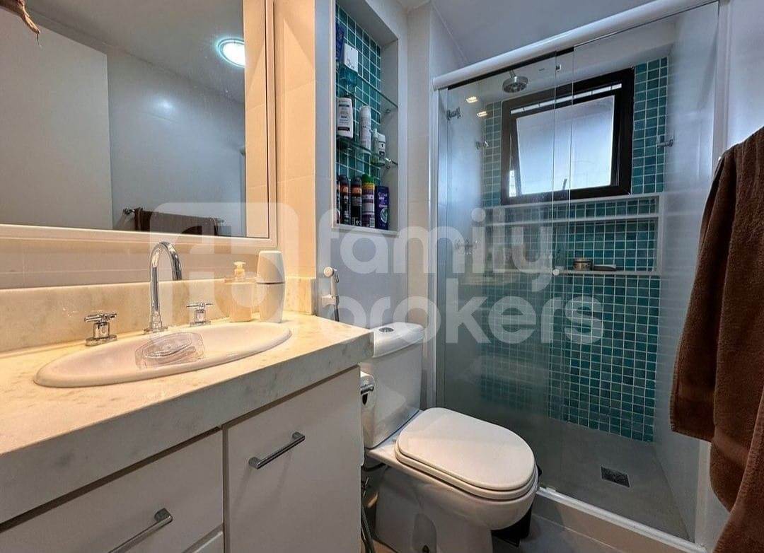 Aproveite o frescor proporcionado pelo split em todos os cômodos e admire a vista panorâmica através da cortina de vidro. Totalmente modernizado, com hidráulica e elétrica impecáveis, este apartamento padrão oferece 1 banheiro social, lavabo e 1 banheiro de serviço, perfeito para o seu dia a dia.