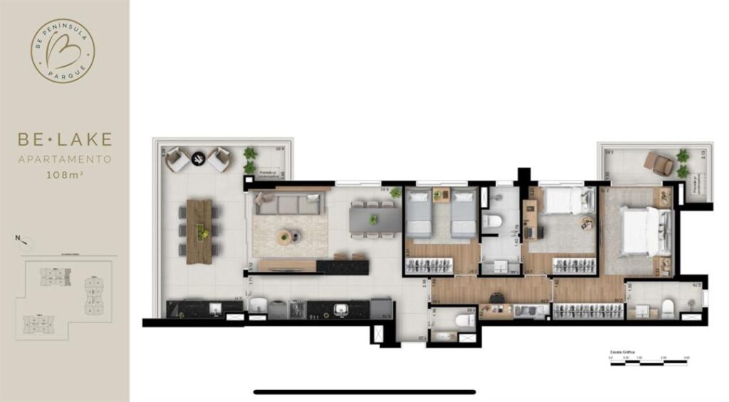 COD AP345446 – BE Peninsula – BE Lake: Seu Novo Lar de Luxo!<br><br>Descubra o encanto e a sofisticação do BE Peninsula – BE Lake, um condomínio exclusivo com apartamentos de 3 suítes, 2 vagas de garagem e 108m². Além disso, sua varanda gourmet é o espaço perfeito para momentos de lazer, oferecendo qualidade de vida e bem-estar.<br><br>Apartamento Espaçoso e Confortável:<br><br>Os apartamentos no BE Peninsula – BE Lake são pensados para proporcionar máximo conforto. Cada unidade possui três suítes, garantindo privacidade para a família. A ampla sala de estar e a varanda gourmet complementam a experiência, enquanto as duas vagas de garagem oferecem praticidade e segurança no dia a dia.<br><br>Lazer e Bem-Estar:<br><br>No BE Peninsula – BE Lake, você encontrará diversas opções para um estilo de vida ativo e saudável. Com uma academia completa, piscina adulta com deck molhado, bar da piscina, SPA, playground, brinquedoteca e piscina infantil, este é o lugar ideal para toda a família.<br><br>Segurança e Conveniência:<br><br>A segurança é uma prioridade no BE Peninsula – BE Lake. O condomínio conta com um sistema de segurança moderno, bicicletário, ônibus exclusivo, sauna e fitness center, proporcionando tranquilidade e comodidade para os moradores.<br><br>Espaços para Eventos e Socialização:<br><br>Com um salão de festas, pergolado e solário das piscinas, o BE Peninsula – BE Lake oferece espaços perfeitos para eventos e momentos de socialização ao ar livre. Isso promove uma comunidade acolhedora e harmoniosa para todos.<br><br>Não perca a oportunidade de viver com conforto e qualidade no BE Peninsula – BE Lake. Agende sua visita hoje mesmo! – Informações Atualizadas em Quinze de março Dois Mil e Vinte e Cinco