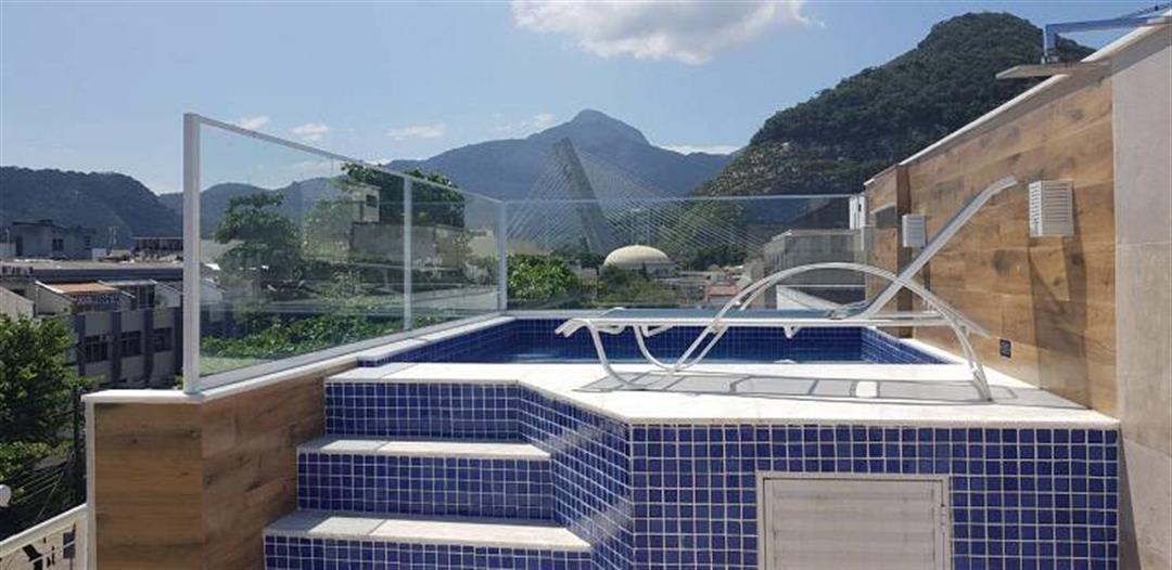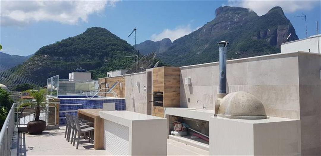 COD CO523327 – Cobertura Duplex na Pedra da Gávea! <br><br>Privacidade e Vista Deslumbrante: <br>A cobertura duplex na Pedra da Gávea é um verdadeiro refúgio, com 4 quartos, sendo duas suítes com isolamento acústico. Além disso, a vista panorâmica da Pedra da Gávea transforma cada dia em uma experiência única. Com sofisticação e conforto, o imóvel é ideal para quem busca privacidade e tranquilidade. <br><br>Conforto e Funcionalidade: <br>A ampla sala dividida em dois ambientes oferece um espaço elegante e acolhedor. A cozinha planejada, equipada com armários sob medida, alia praticidade e estilo. Ainda, o imóvel conta com dependência de empregada e cinco aparelhos de ar condicionado split, assegurando funcionalidade e bem-estar em todos os detalhes. <br><br>Suítes de Luxo: <br>A suíte principal é um destaque, com um banheiro sofisticado equipado com duas pias, dois chuveiros e uma jacuzzi. As janelas anti-ruído em todos os quartos garantem conforto absoluto, criando ambientes perfeitos para relaxar e renovar as energias. <br><br>Área Gourmet e Lazer: <br>O espaço gourmet oferece churrasqueira e forno de pizza a lenha, ideal para receber amigos. A área de lazer inclui piscina, redes de proteção e pula-pula, promovendo diversão para todas as idades. <br><br>Diversão e Qualidade de Vida: <br>Um quarto infantil temático, com casinha e escorrega, garante segurança e alegria para os pequenos. Agende sua visita e descubra como esta cobertura duplex combina elegância, conforto e localização privilegiada para proporcionar uma vida completa e inesquecível! – Informações Atualizadas em Quinze de março Dois Mil e Vinte e Cinco