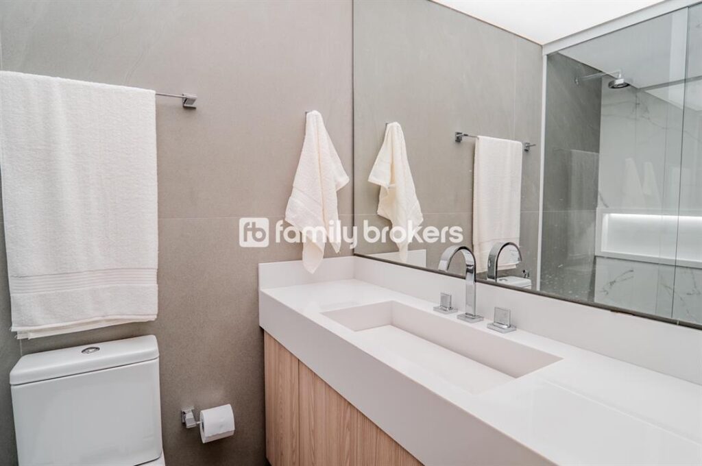 O apartamento conta com revestimentos de alta qualidade e uma sala ampla integrada à cozinha com conceito aberto. A varanda oferece uma vista deslumbrante para o mar, ideal para momentos de relaxamento e lazer.