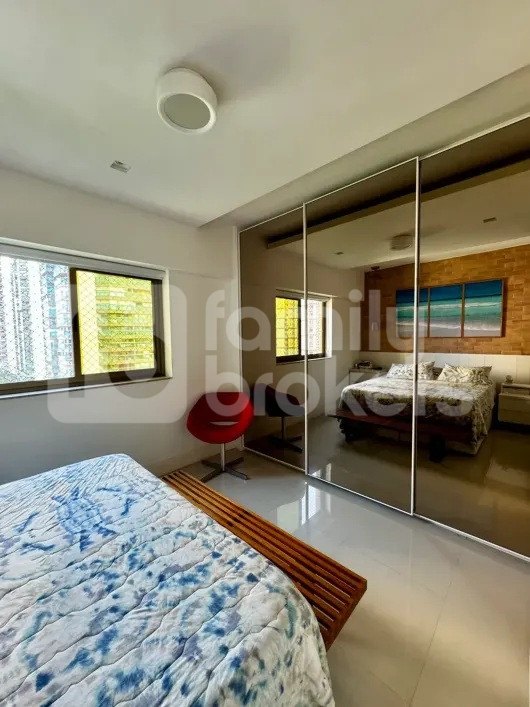 Condomínio Palais De Nice – Sol da manhã, ampla varanda vista mar e cortina de vidro, reformadíssimo. Sala em “L” 02 ambientes toda em porcelanato, circulação, 04 quartos (2 Suites), repleto de armários, espelhos. Apartamento finamente decorado, dependência de empregada completa, ar condicionado split em todos os cômodos.