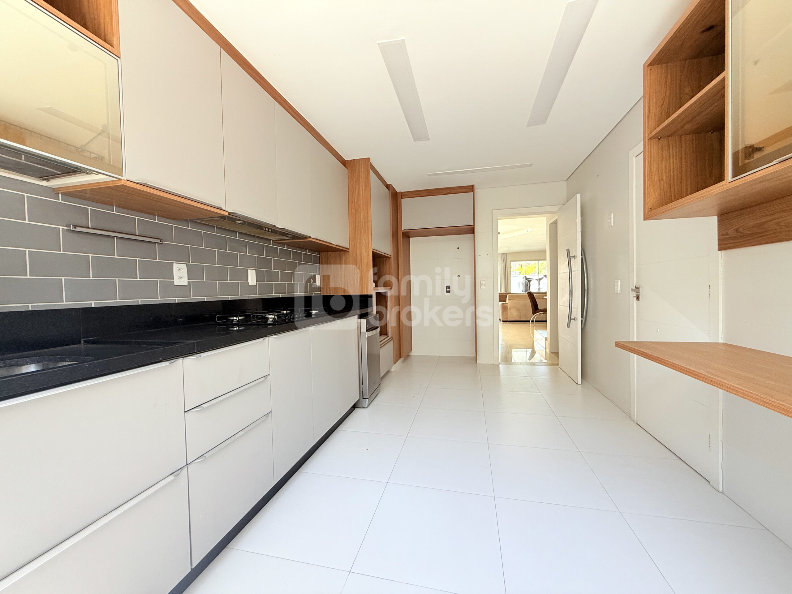 A cozinha planejada, funcional e moderna, possui armários sob medida e ótimo aproveitamento de espaço. A casa ainda dispõe de dependência completa de empregada, trazendo mais praticidade ao dia a dia.