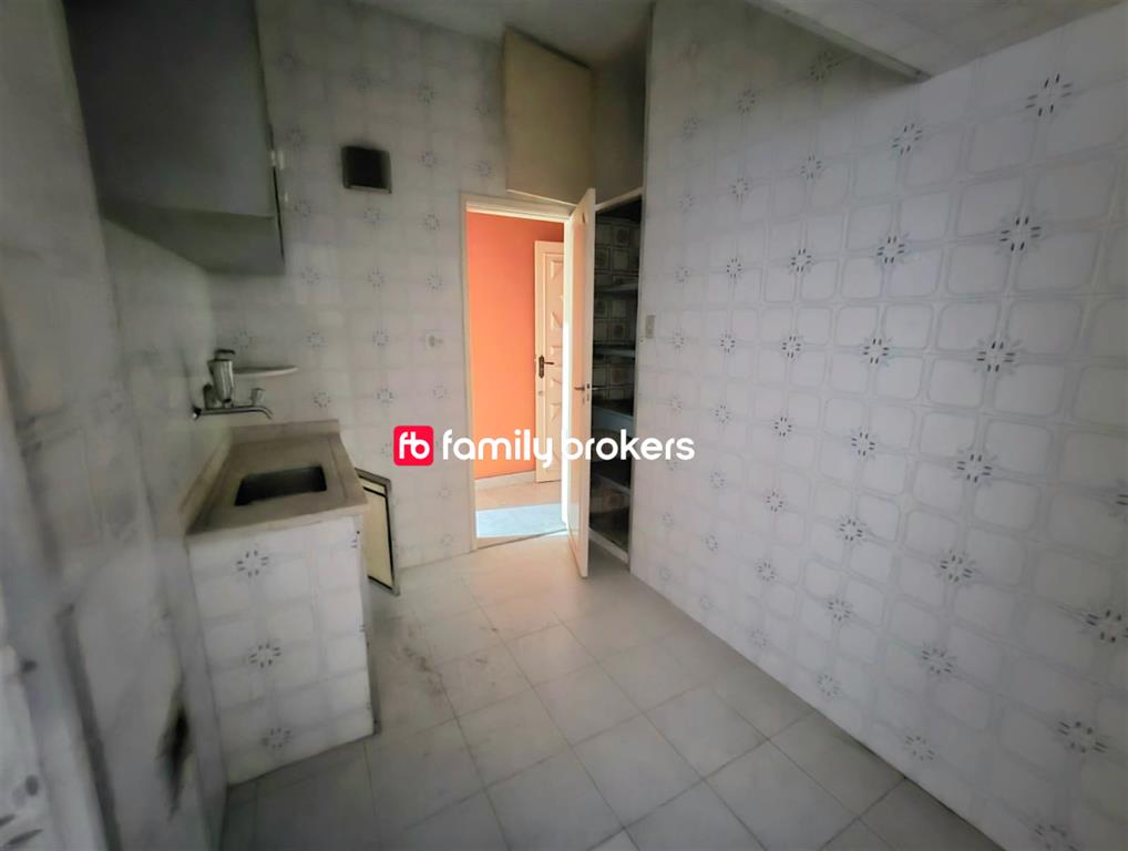 Cozinha ampla cabendo fogão e geladeira, banheiro social grande, quartos com armários, dependências completas e área de serviço.