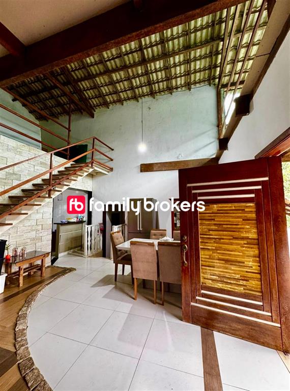 Em um terreno de 1.200m², são cerca de 300m² de área construída, incluindo 3 suítes (uma com closet), sala em dois ambientes, cozinha com armários e eletros, além de área de serviço, mezanino e casa de caseiro. O imóvel conta com cisterna de 8 mil litros abastecida por nascente, promovendo economia e sustentabilidade.