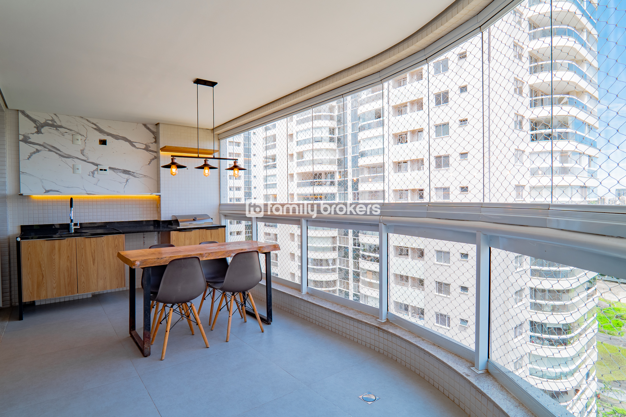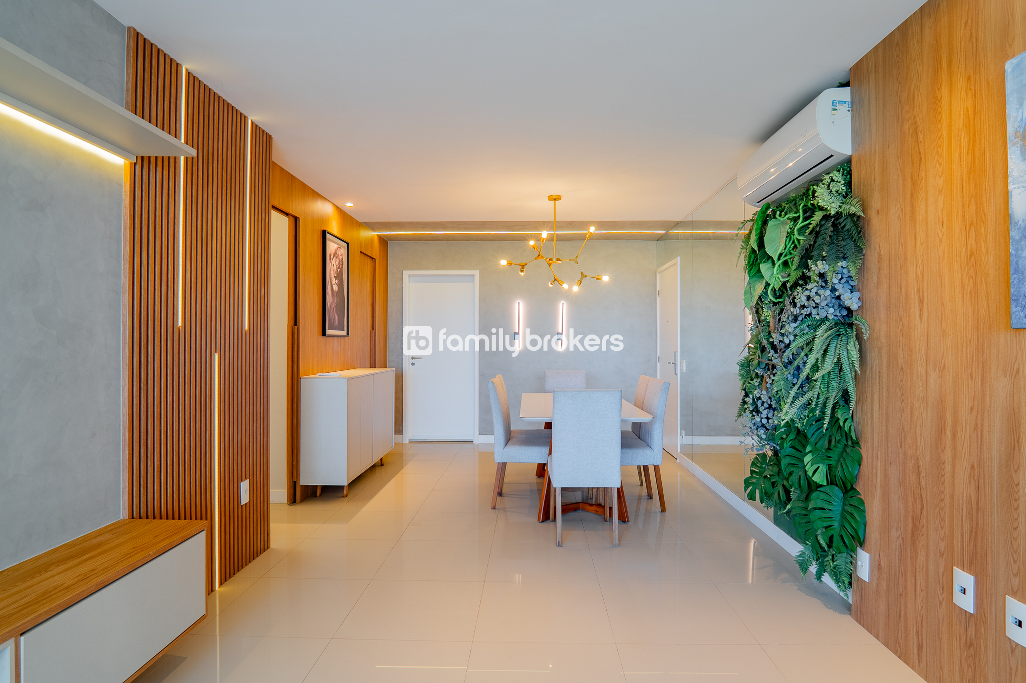 Todos os cômodos com revestimentos marcenarias de alto padrão, louças e metais de qualidade superior, ar split nos ambientes e 02 vagas de garagem.