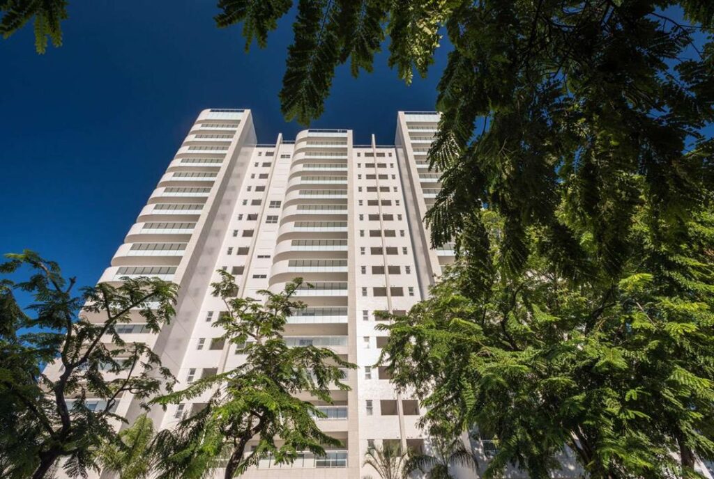 O empreendimento possui fachada revestida em cerâmica com detalhes em granito jateado/escovado e detalhes de pintura acrílica texturizada.