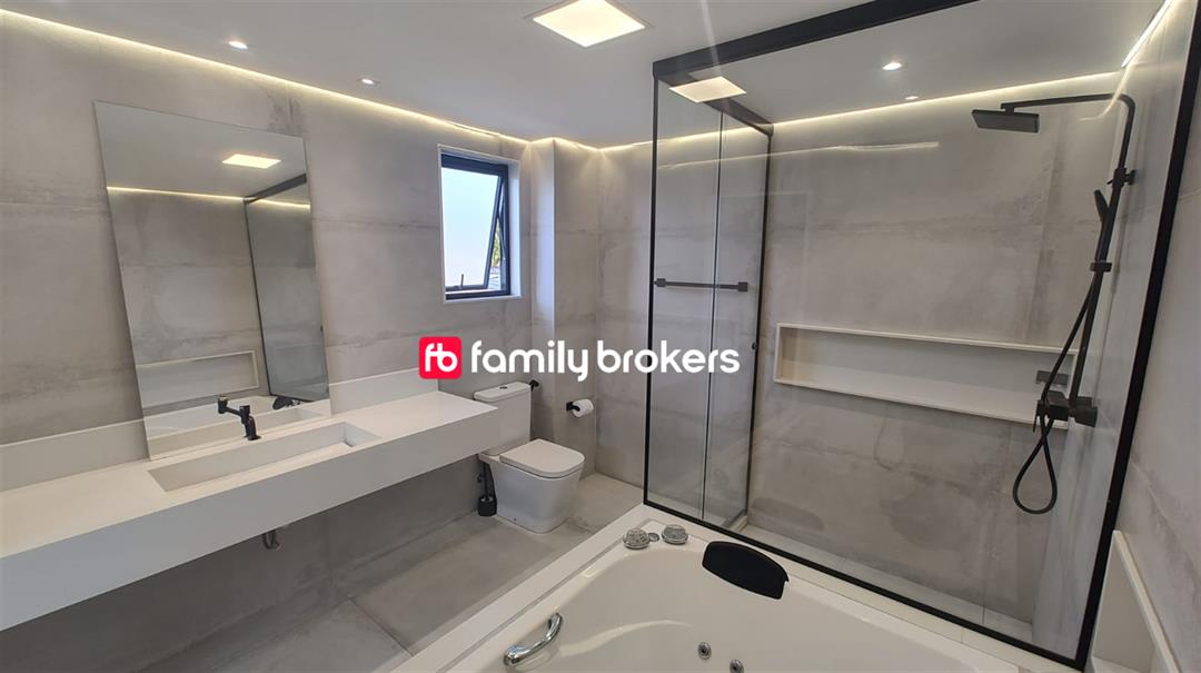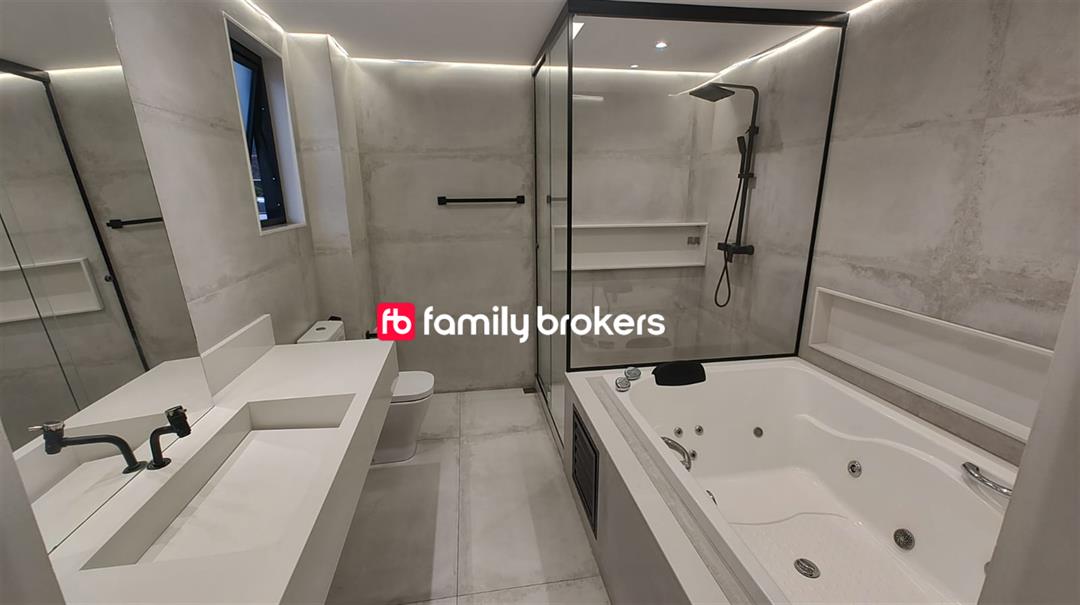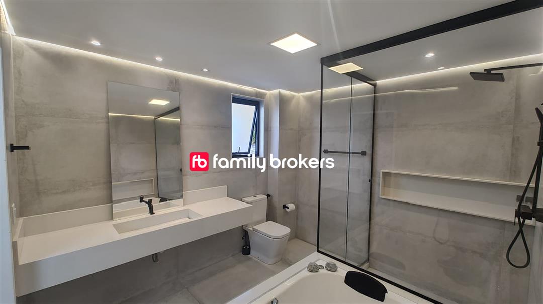 196 m² com 3 quartos e 8 banheiros.