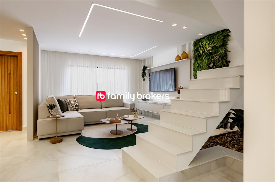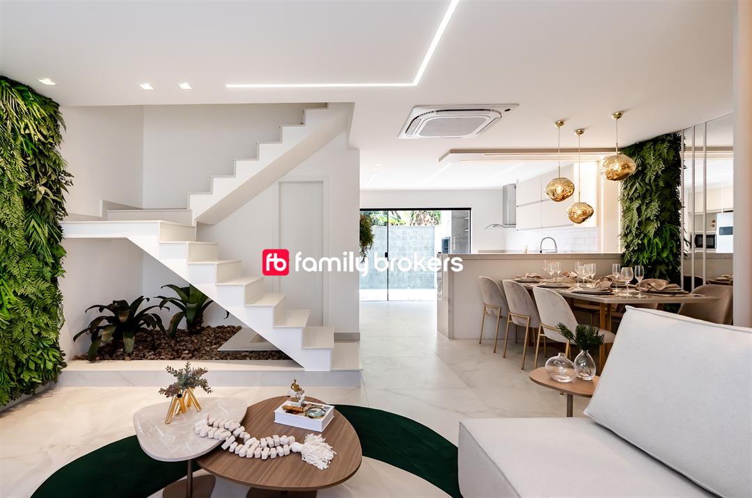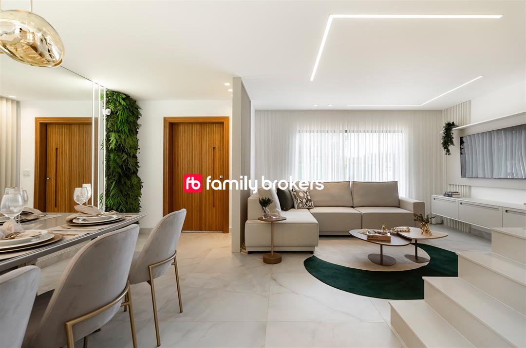 A ampla sala em 3 ambientes é o coração da casa. Com espaço para sala de estar, jantar e TV, ela foi projetada para receber amigos e familiares com conforto. O layout aberto permite uma transição suave entre os ambientes, criando um espaço fluido e acolhedor.