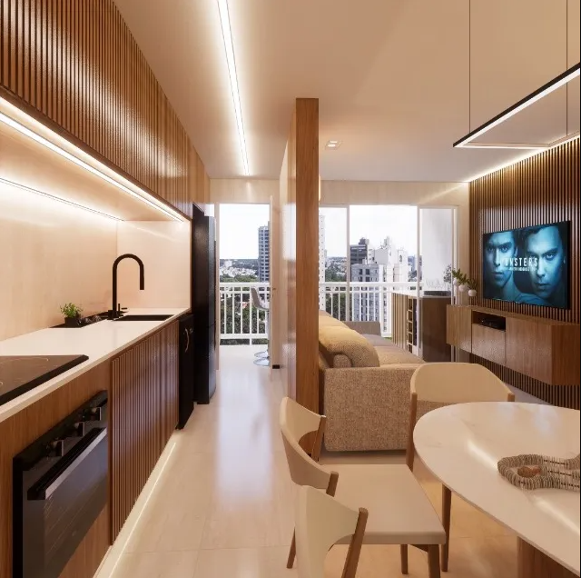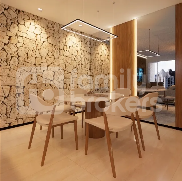 60m m² com 3 quartos e 2 banheiros.