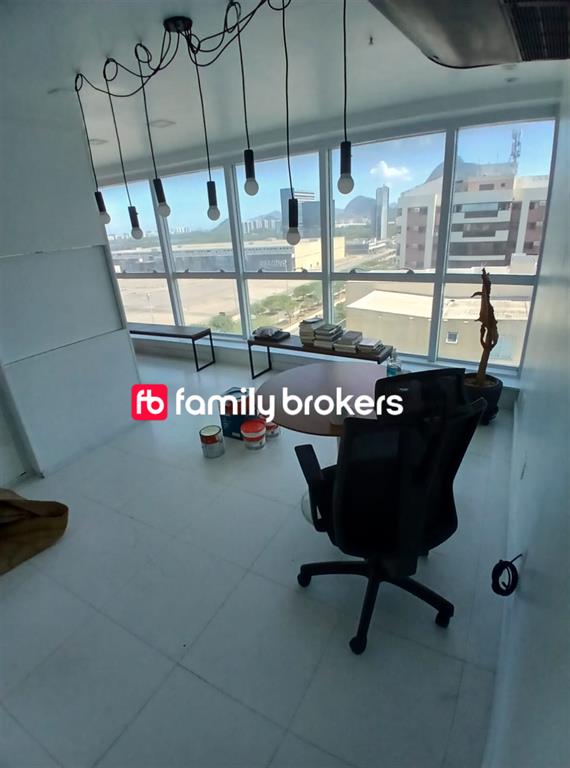 Sala moderna no Lumina Work Station, na Av. Embaixador Abelardo Bueno, 3180, em frente ao Parque Olímpico. Possui banheiro privativo, 1 vaga de garagem e sol da tarde. Condomínio com auditório, sala de reuniões, lounge, copa e estacionamento para visitantes.